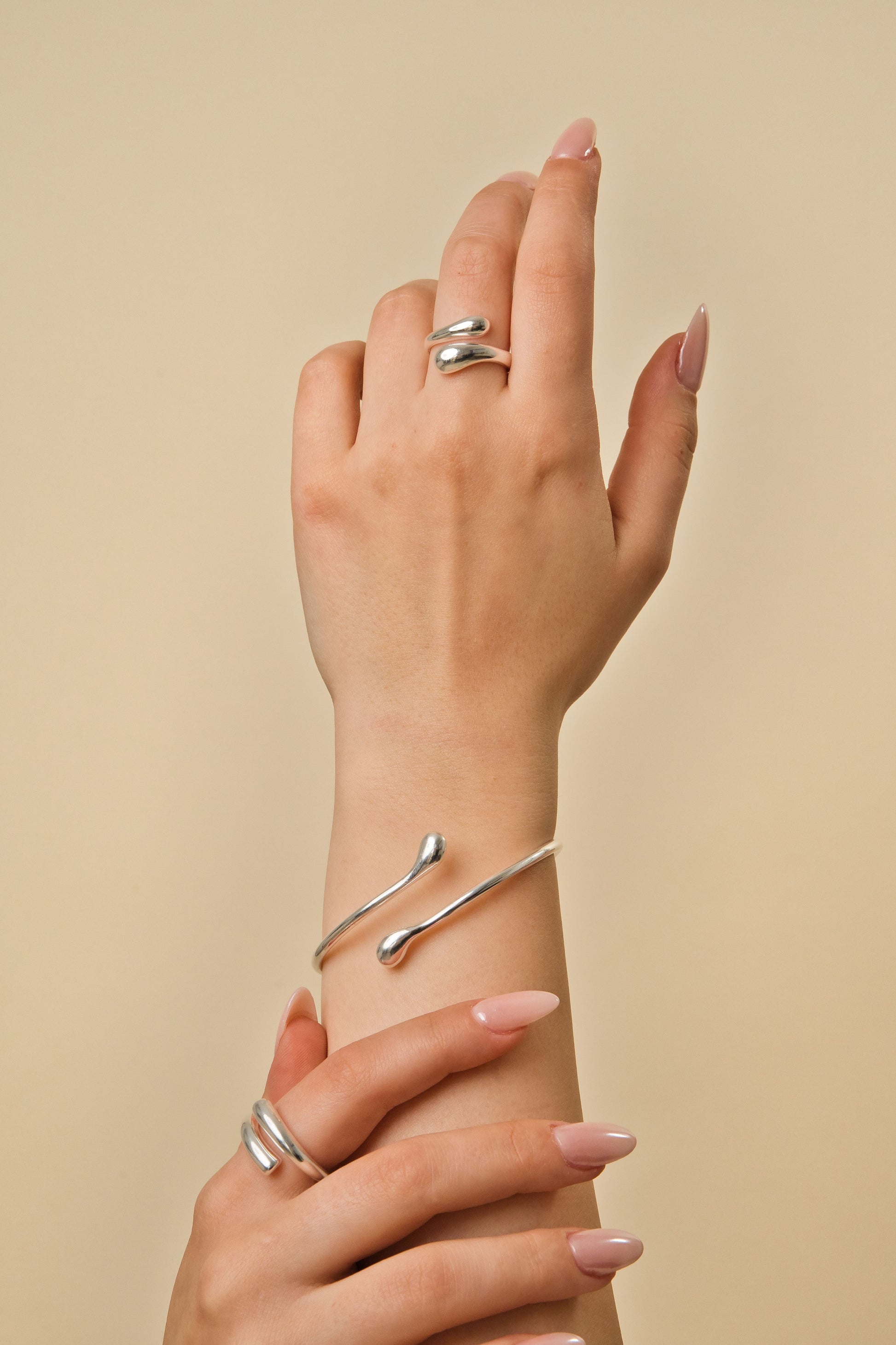 Der Double Drop Armreif vereint zeitlose Eleganz und modernes Design.Hergestellt aus hochwertigem 925 Sterling Silber, besticht er durch seinefiligrane Form und die ansprechenden Tropfen-Details. Perfekt für jedenAnlass, verleiht dieser Armreif Ihrem Look eine besondere Note. Ein Must-Have für Schmuckliebhaber!