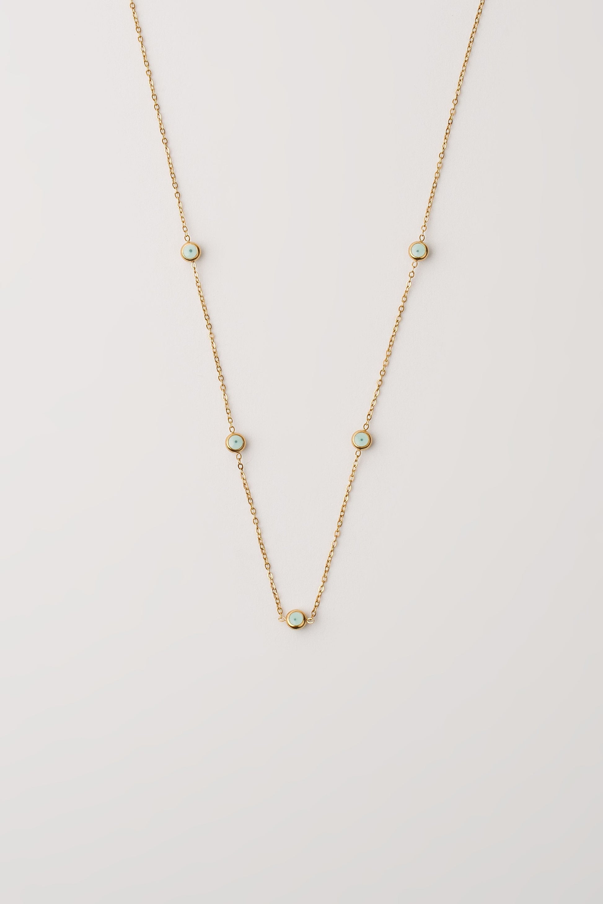 Entdecken Sie die bezaubernde Halskette Sky Eyes – ein einzigartiges Schmuckstück, das alle Blicke auf sich zieht! Mit ihrem filigranen Design und dem strahlenden Anhängern wird sie zum perfekten Accessoire für jeden Anlass. Funkelnde Details und eine harmonisch himmlische Farbe verleiht Ihrem Outfit eine besondere Note. Tragen Sie die Sky Eyes Halskette und setzen Sie ein Statement mit diesem außergewöhnlichen Schmuckstück!
