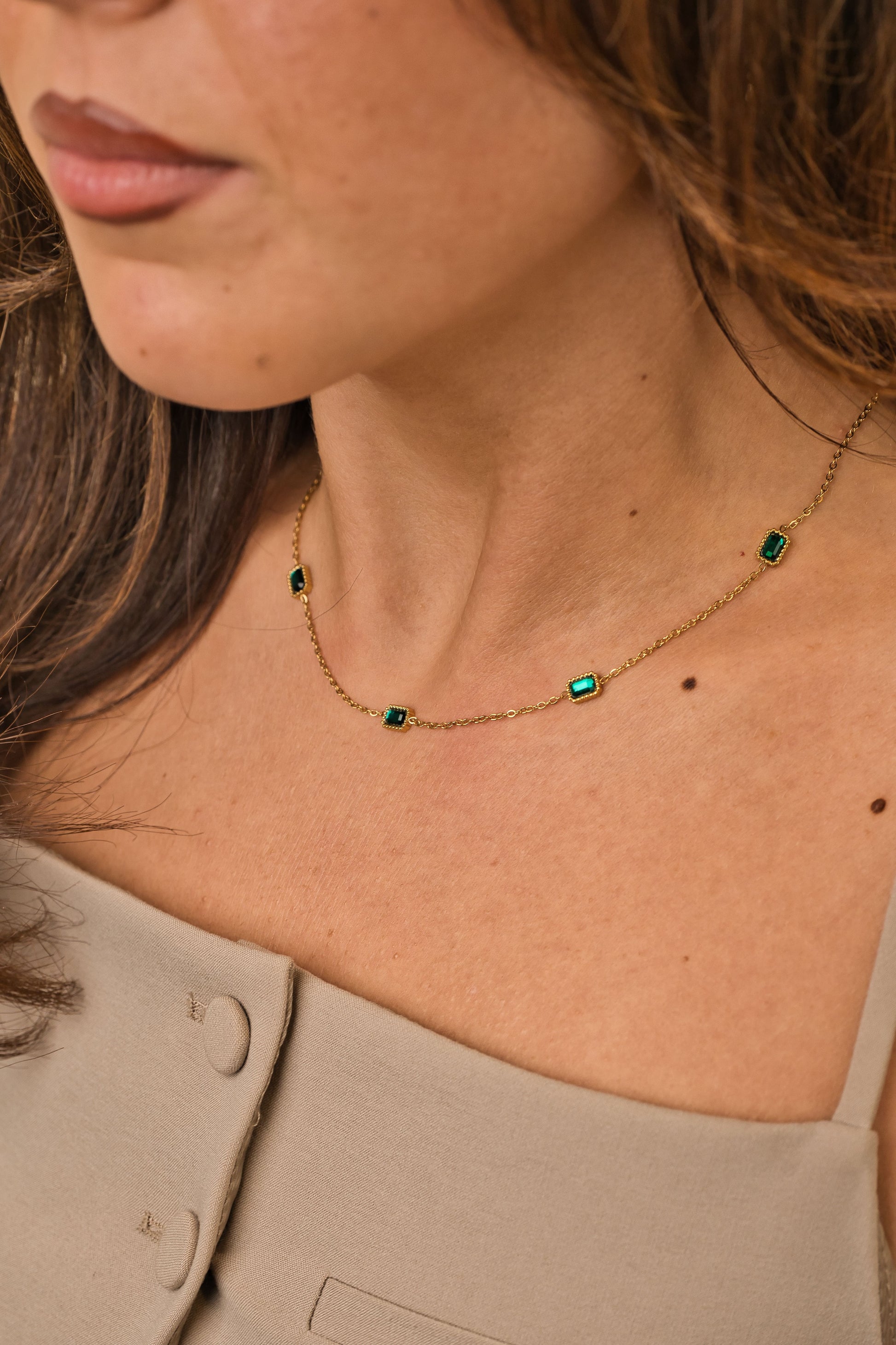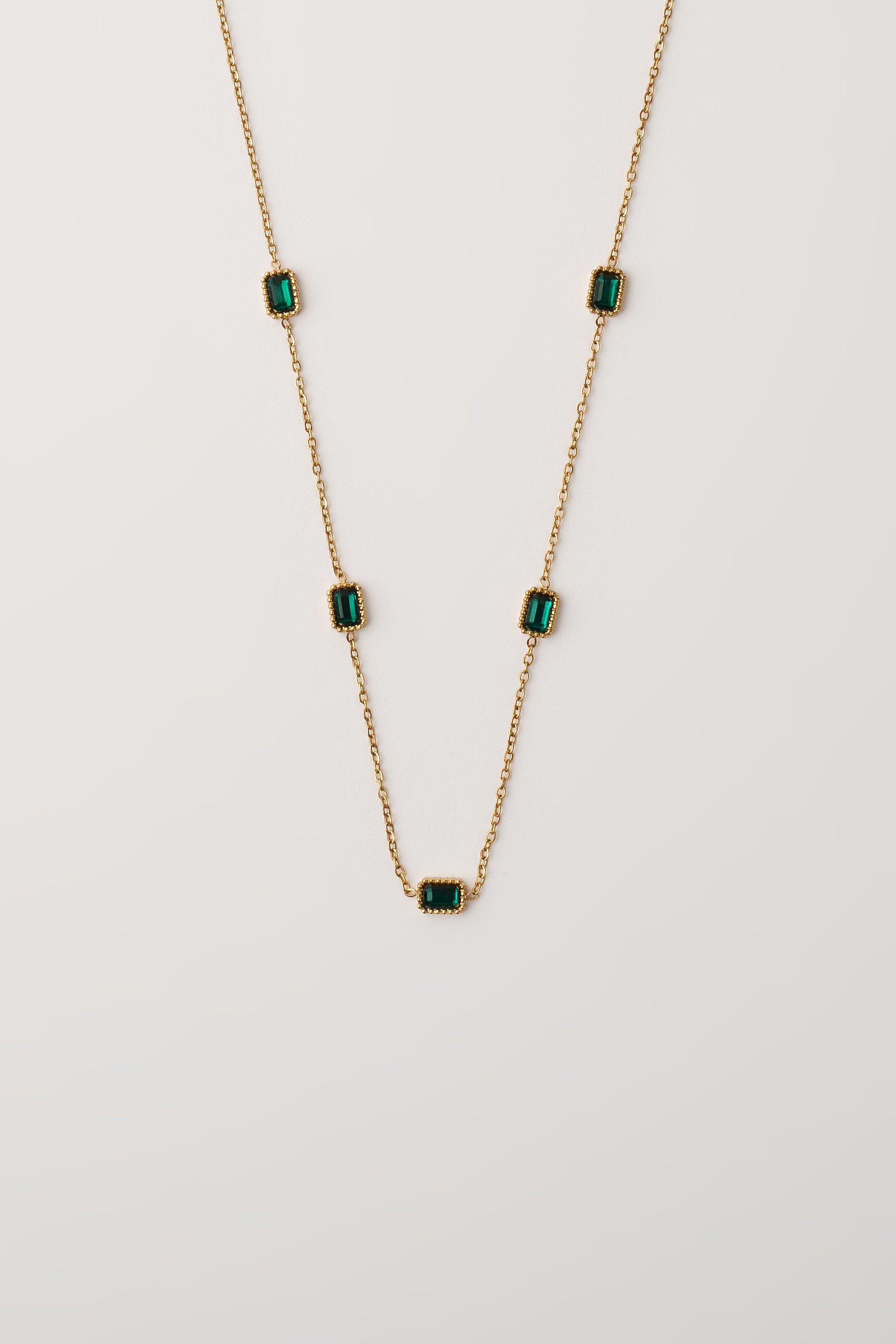 Unsere Smaragd Zirconia Halskette strahlt edlen Luxus aus und begeistert mit funkelnden Zirkonia-Steinen, die in perfektem Einklang mit dem wasserfesten und vergoldeten Edelstahl stehen. Dieses exquisite Schmuckstück ist ideal, um jedem Outfit einen Hauch von Glamour und Eleganz zu verleihen. Ein Must-Have für stilbewusste Frauen!