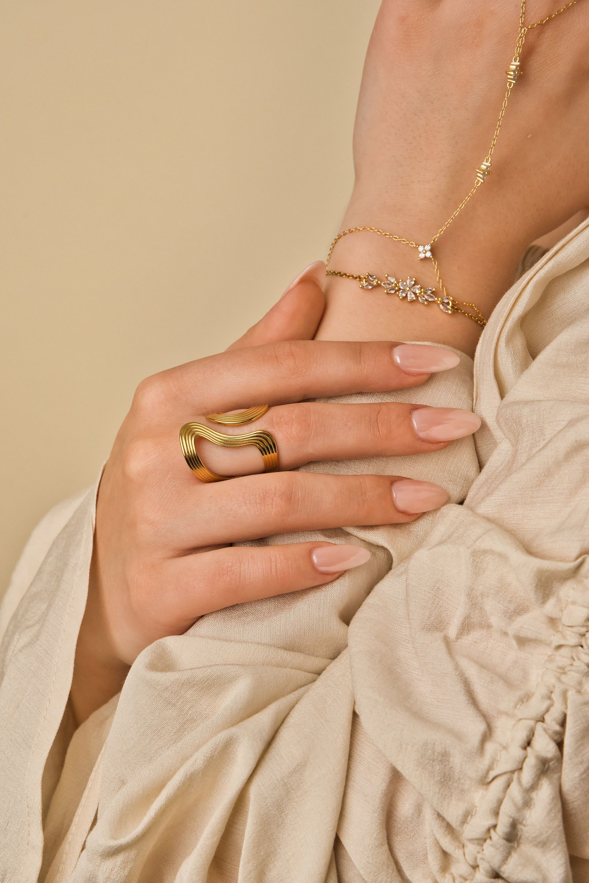 Der Structured Art Ring aus Edelstahl begeistert mit seinem modernen, gerillten Design und strahlt in einem elegantenGoldton. Dieses auffällige Schmuckstück vereint zeitgenössische Ästhetik mit robuster Qualität und ist perfekt für jedenAnlass. Ein stilvolles Accessoire, das jedem Outfit einen Hauch von Raffinesse verleiht!