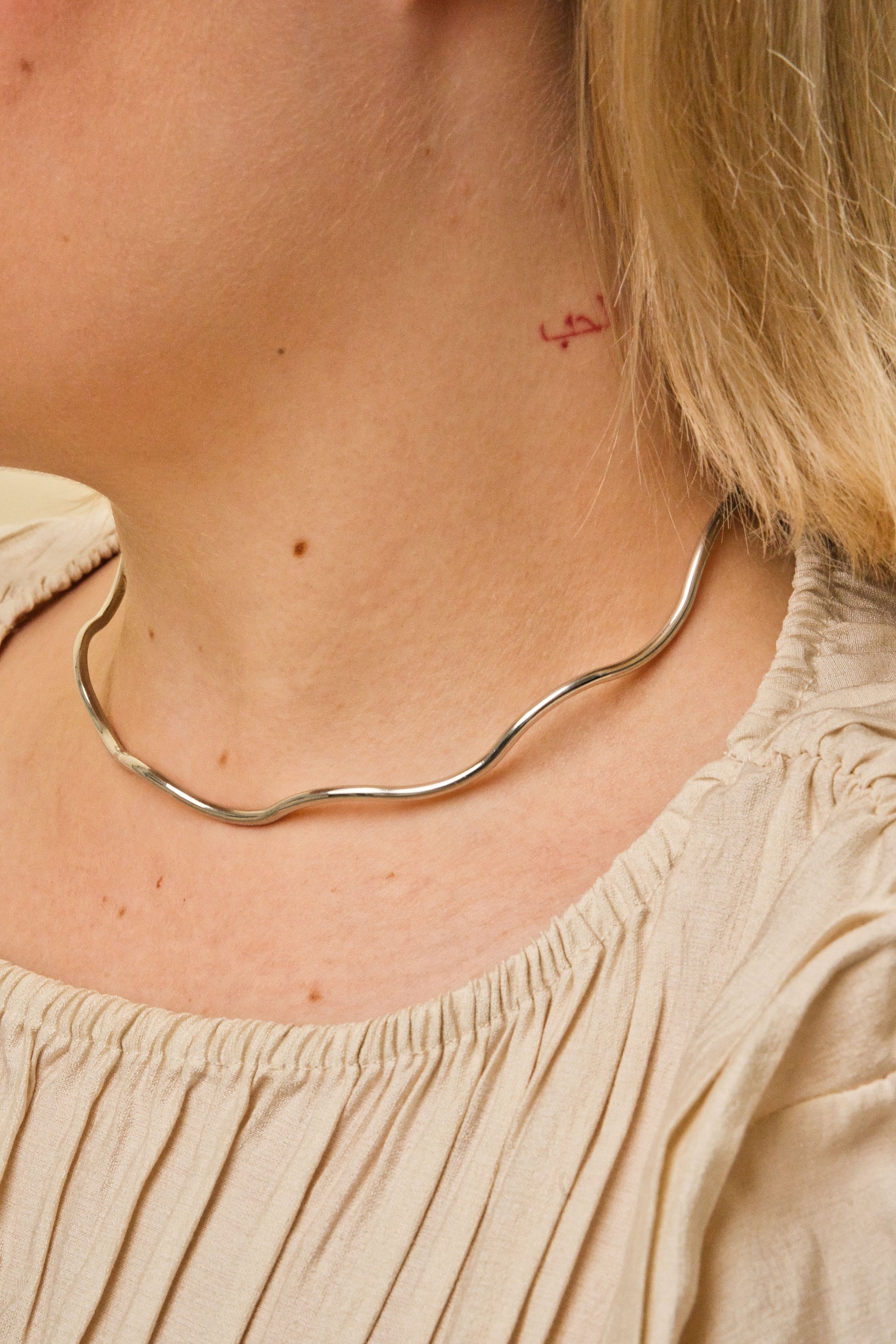 Der verstellbare Wave Choker schimmert, je nach Wahl, gold- oder silberfarben und ist durch seine Flexibilität passend einstellbar. Die wellige Form lässt ihn zu einem schönen Detail erstrahlen, welcher ideal zu vielseitigem Schmuck kombinierbar ist.Der Choker kann damit wunderbar sowohl zu Festlichkeiten, aber auch im Alltag getragen werden!